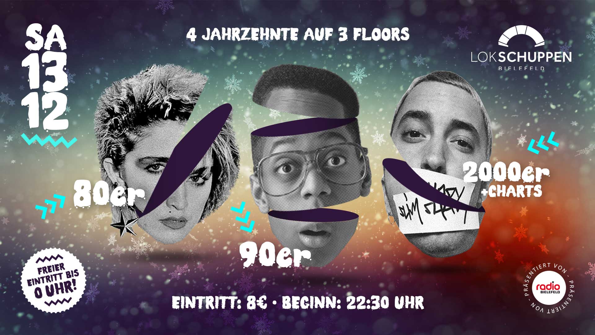 Direkt im Anschluss geht es weiter mit der Radio Bielefeld präsentiert: 80er, 90er, 2000er & Charts Party. Für Besucher*innen der MAMAGEHTTANZEN ist der Eintritt FREI!