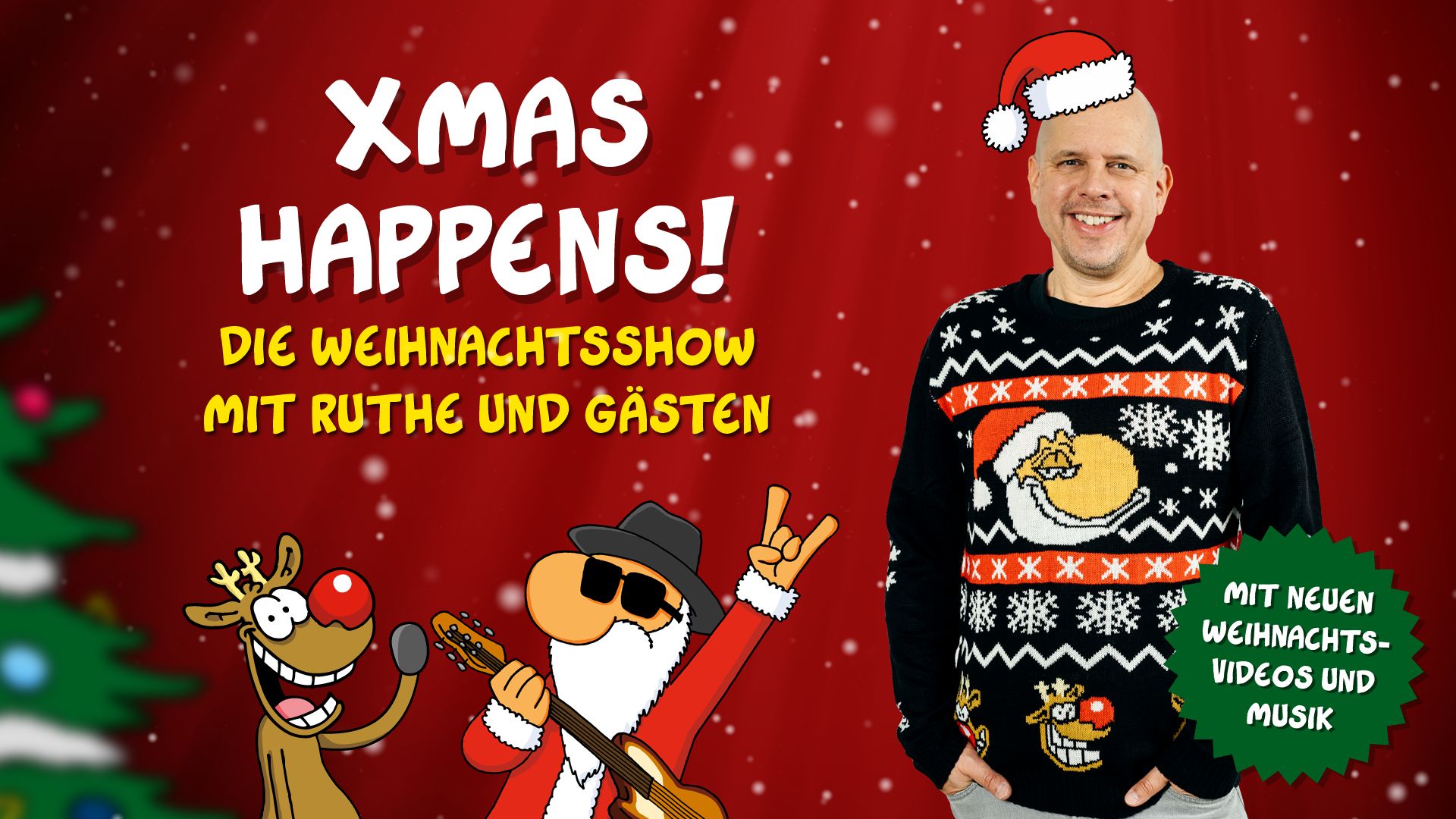 In seiner Weihnachtsshow zeigt Ruthe viele weihnachtliche Clip-Klassiker und neue Sketche, präsentiert weihnachtliche Witzbilder im neuen Kontext, führt einen True-Crime-Podcast mit Rudi und Santa vor und hat prominente (musikalische) Gäste dabei. Außerdem kann das Publikum bei einem Quiz etwas gewinnen. Schöne Bescherung!
